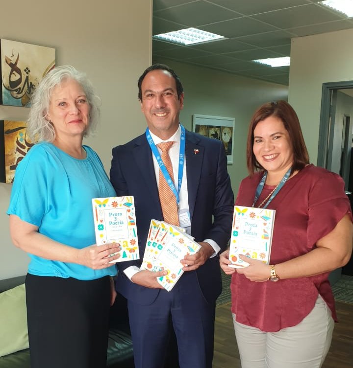 En este contexto, la Embajada de Chile en los Emiratos Arabes Unidos distribuyó los primeros 28 ejemplares del libro "Prosa y Poesía Escolar" de Gabriela Mistral en los principales centros de enseñanza del español.