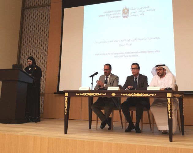 Con el proposito de difundir los objetivos de la COP25 que se realizará en Madrid bajo la presidencia de nuestro país, el Embajador Jorge Daccarett participó de una conferencia organizada por el Ministerio de Cambio Climático y Medioambiente de los Emiratos Árabes Unidos.