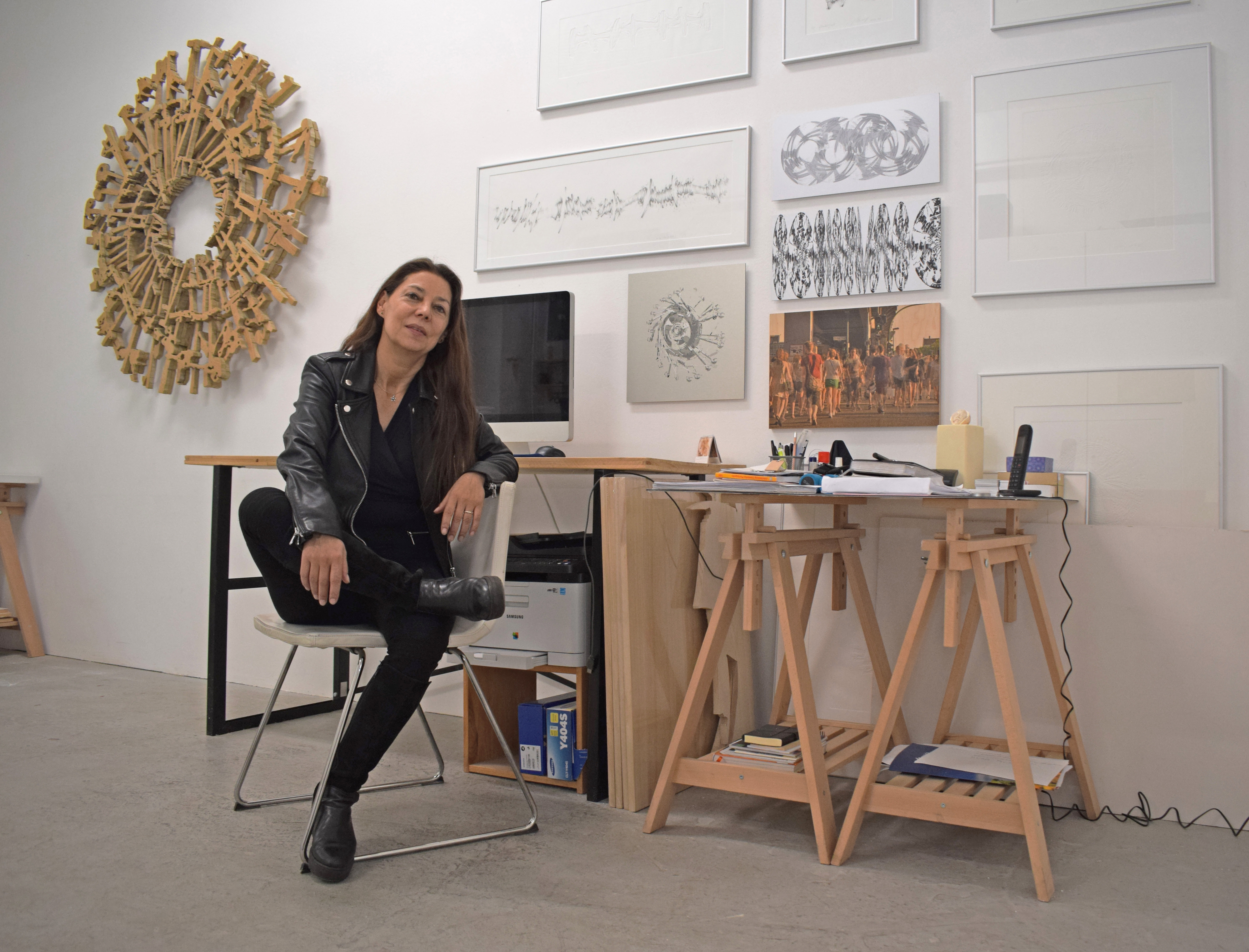 "Las características de materiales, las piedras y las estrellas en el cielo, la búsqueda del sentido y del origen de nuestra existencia. Todo esto me ha inquietado durante toda mi vida", cuenta la artista. "También la pregunta '¿cómo la materia se está transformando en el transcurso del tiempo?'", agrega la chilena.