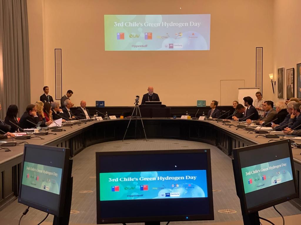 Hamburgo, 12 de noviembre de 2022. En la ciudad de Hamburgo se celebró la tercera edición del Chile’s Green Hydrogen Day. El propósito de este evento fue una visión acerca del desarrollo del mercado del hidrógeno verde en Chile y las oportunidades de cooperación política y económica que existen entre ambos países.