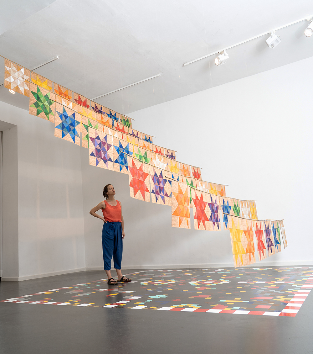La exhibición "Todos somos uno/Und alle sind wir eins" de la artista chilena Amalia Valdés busca enfrentar al público alemán a un imaginario ancestral andino, a través de una pieza compuesta por 49 módulos de láminas de corcho que se mantienen suspendidas en el espacio, recreando una Wiphala.