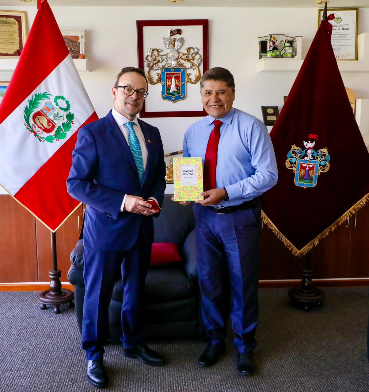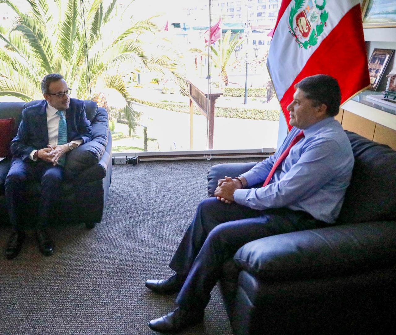 El cónsul general de Chile en Arequipa, Jorge Iglesias, fue recibido en audiencia protocolar por el acalde provincial de Arequipa, acompañado del excónsul honorario.