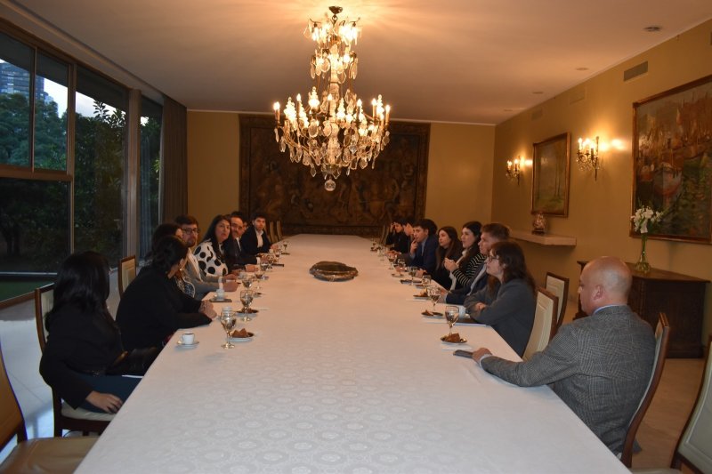 Un equipo de la Facultad de Derecho de la Universidad de Chile que participa en el programa “Cambio de Roles”, organizado por el Instituto de Estudios Estratégicos y de Relaciones Internacionales (IEERI) del Círculo de Legisladores del H. Congreso de la Nación de Argentina, visitó nuestra embajada. Este año el programa trata sobre “Patente e Inteligencia Artificial” y convoca a 250 estudiantes de universidades argentinas, Chile, Perú y Ecuador.