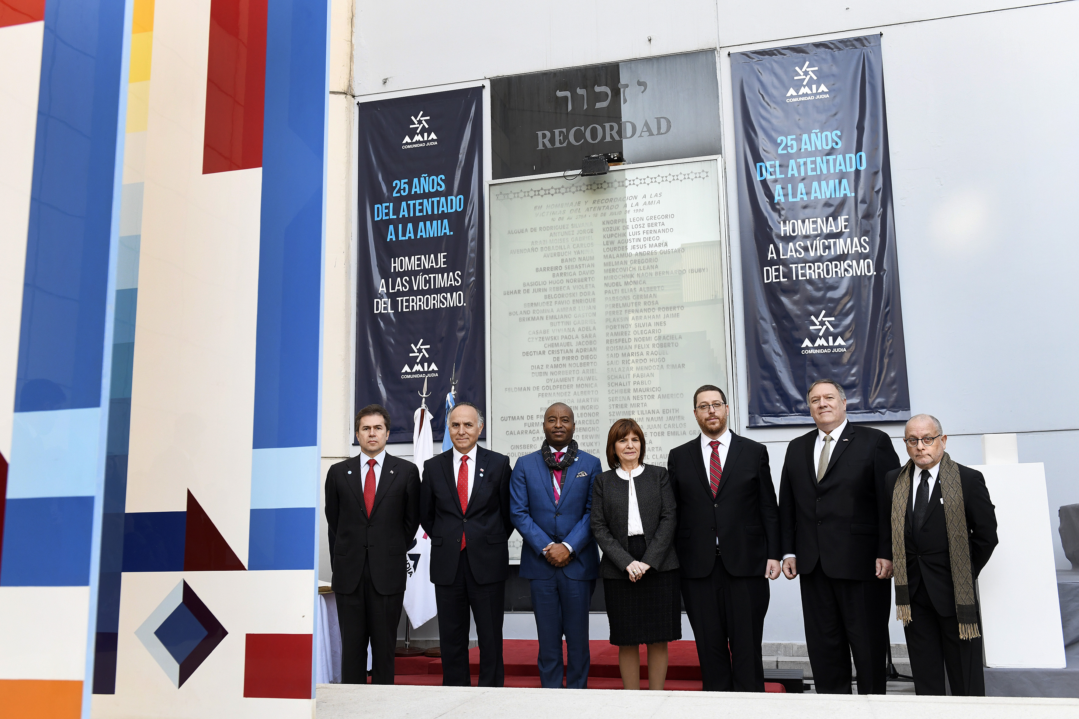 El texto señala lo siguiente: "Los abajo firmantes, en representación de los países participantes de la Conferencia Ministerial Hemisférica de Lucha contra el Terrorismo, que se desarrolla en la Ciudad de Buenos Aires en el día de la fecha, rendimos homenaje a las víctimas del Atentado a la Asociación Mutual Israelita Argentina (AMIA), ocurrido el 18 de julio de 1994.