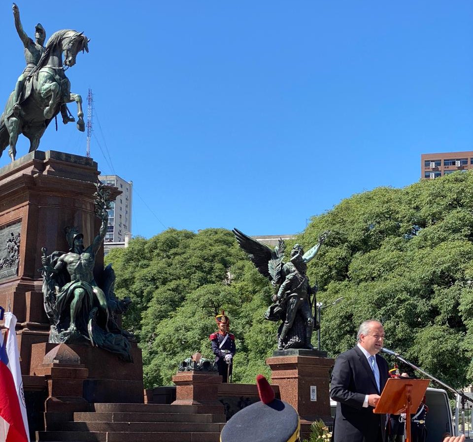 Hoy, se realizó en el monumento al General José de San Martín, en Buenos Aires, una ceremonia militar por los 203 años de la Batalla de Chacabuco.
