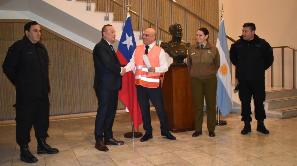 El embajador Viera Gallo, la Superintendencia del Cuerpo de Bomberos de la CABA , con la presencia del jefe del depto de prevención del Minrel, Pablo Marín, se dió por iniciada la jornada teórica práctica y simulacro en las dependencias de esta Misión.