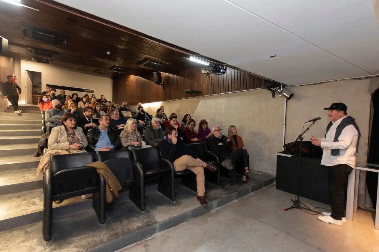 La Embajadora Bárbara Figueroa junto al cineasta Luis Vera y Mauricio Álamo, encargados del área de cine y audiovisual de la DIRAC participaron del cierre del ciclo de cine "Los cuatro universales de Chile", en el auditorio del CCMATTA.
