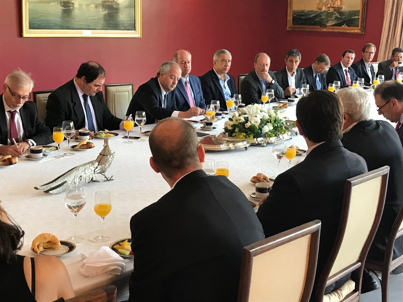 El Embajador de Chile en Argentina, Nicolás Monckeberg, sostuvo su primer encuentro de trabajo con representantes y ejecutivos de empresas chilenas presentes en Argentina. La iniciativa da inicio a un mecanismo de diálogo periódico que el Jefe de la misión diplomática quiere sostener con el sector empresarial, con miras no solo a conocer sus emprendimientos en este país, sino también para ofrecer la colaboración de la Embajada para tender puentes con empresas argentinas e impulsar el posicionamiento de los productos chilenos en el país.