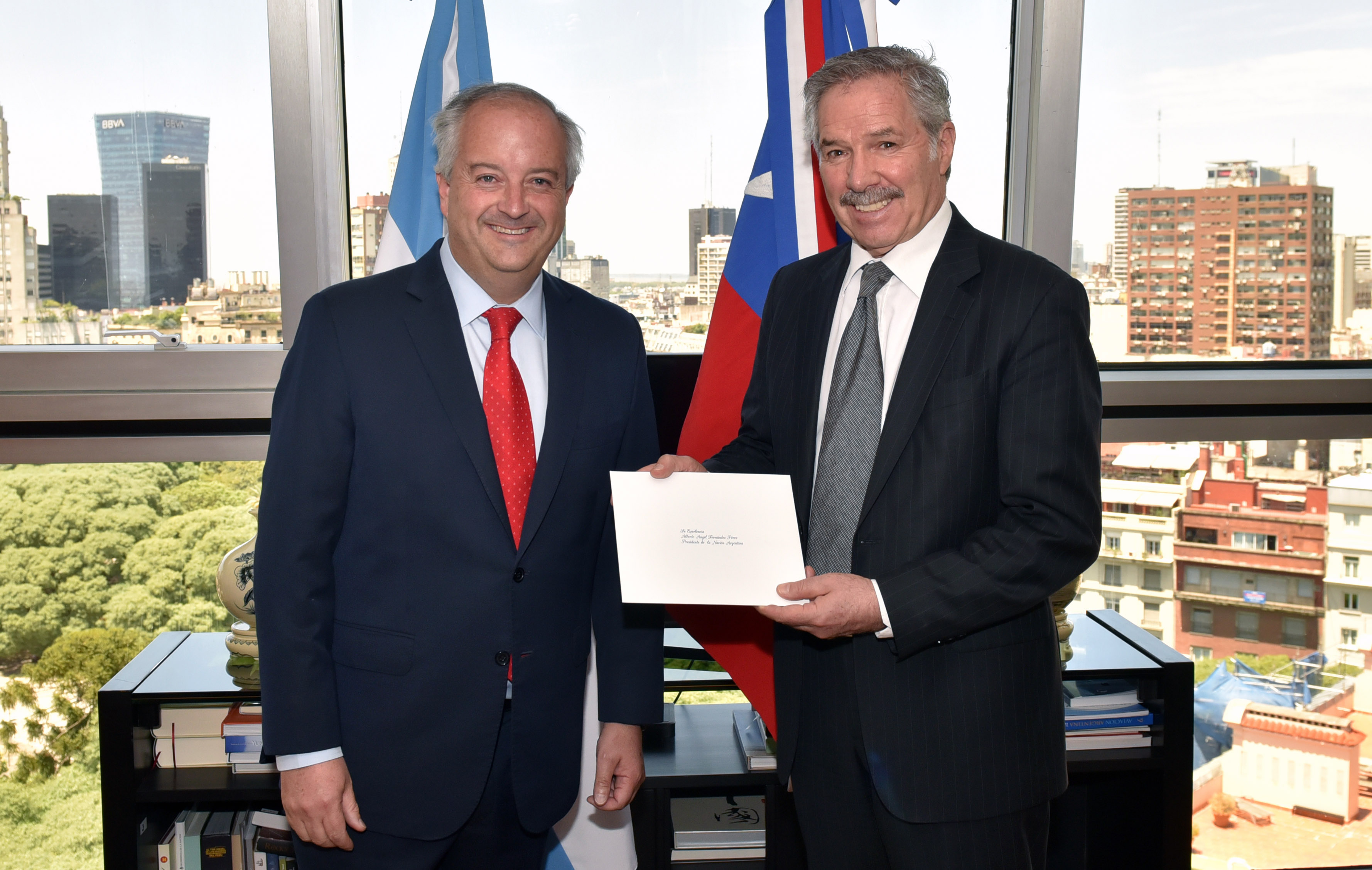 Embajador Monckeberg presenta copia de cartas credenciales a Canciller Solá