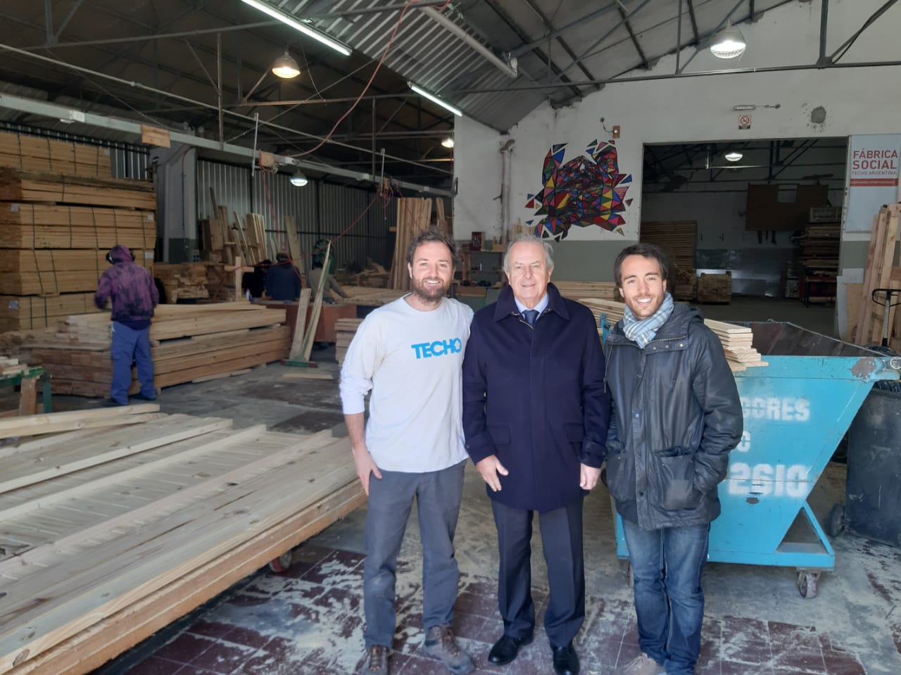 Este martes 13 de agosto, el Embajador Sergio Urrejola Monckeberg, visitó la "Fabrica Social" perteneciente a la organización no gubernamental (ONG) de origen chileno Techo, la cual confecciona media aguas para dicha institución en Argentina.