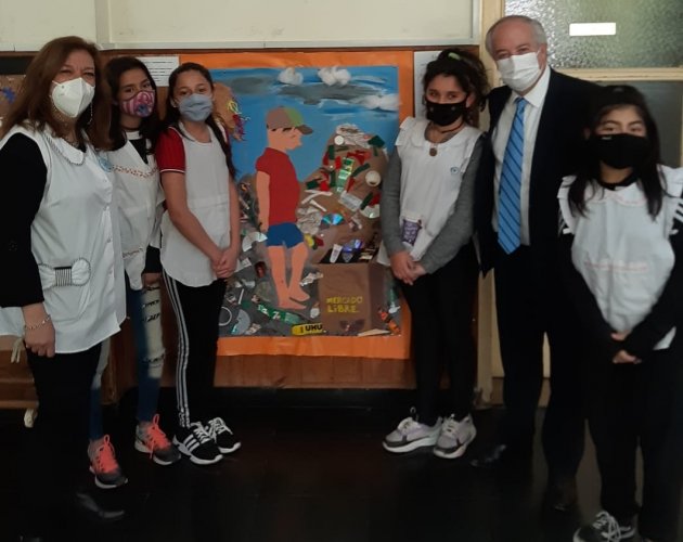 Fue recibido por la directora Adriana Darcy y por estudiantes de séptimo grado, quienes mostraron al Embajador un taller digital referido a Chile, realizado para esta ocasión especial.