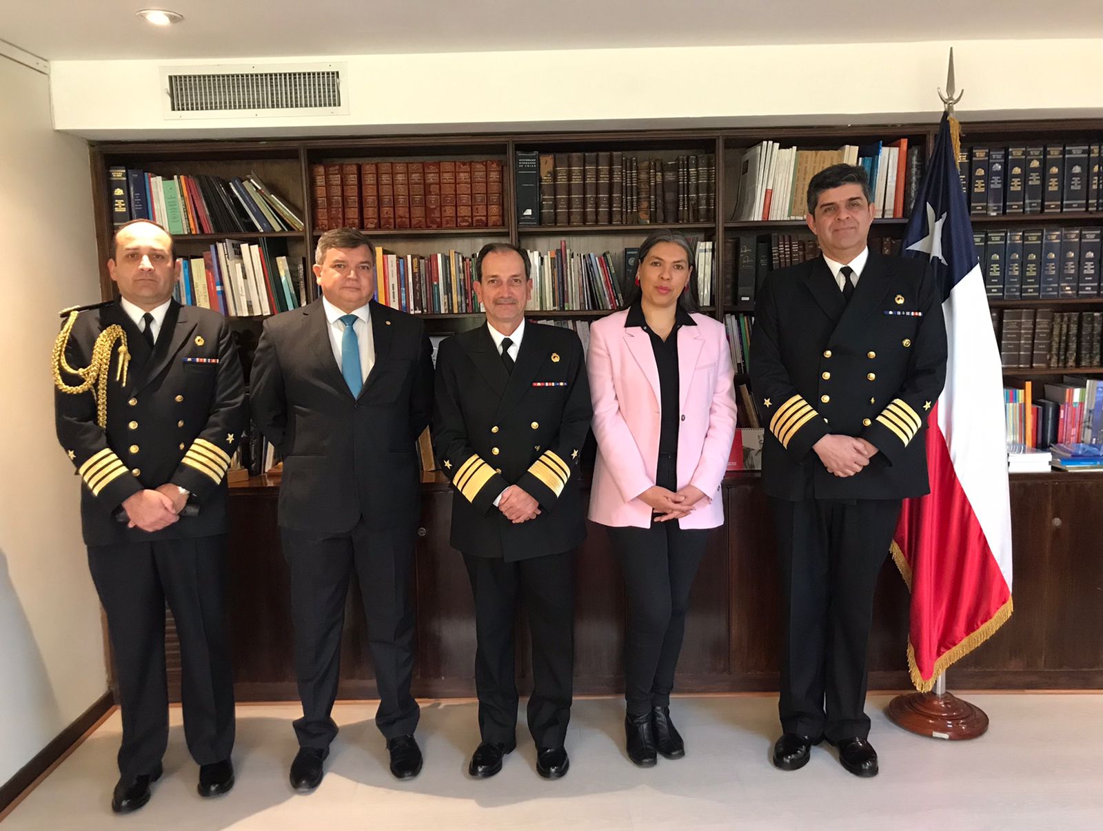 Por parte de nuestro país, la delegación estuvo encabezada por el Jefe del Estado Mayor General de la Armada, Vicealmirante Yerko Marcic Conley, acompañado durante las jornadas por el Agregado Naval de Chile en Argentina, Capitán de Navío Gerardo Zwanzger Lander.