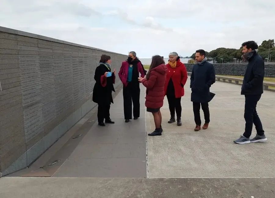 La Embajadora Bárbara Figueroa junto a Catalina Barceló y Rodrigo Matamoros, diplomáticos de la misión de Chile en Argentina, visitó el Parque de la Memoria Monumento a las víctimas del Terrorismo de Estado, donde recibida por la Directora General, Nora Hochbaum.