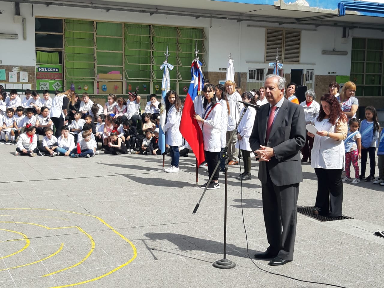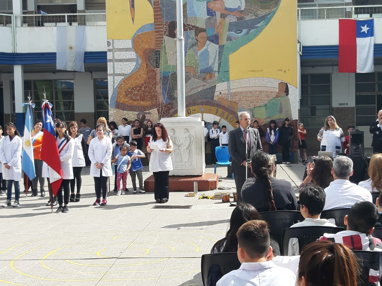 La ceremonia se inició con la entonación de los himnos nacionales de Chile y Argentina y los discursos de la Directora de la Escuela, Adriana Darcy, y de la Directora del Distrito 4 de Educación de la Ciudad de Buenos Aires, Alejandra Do Santos.