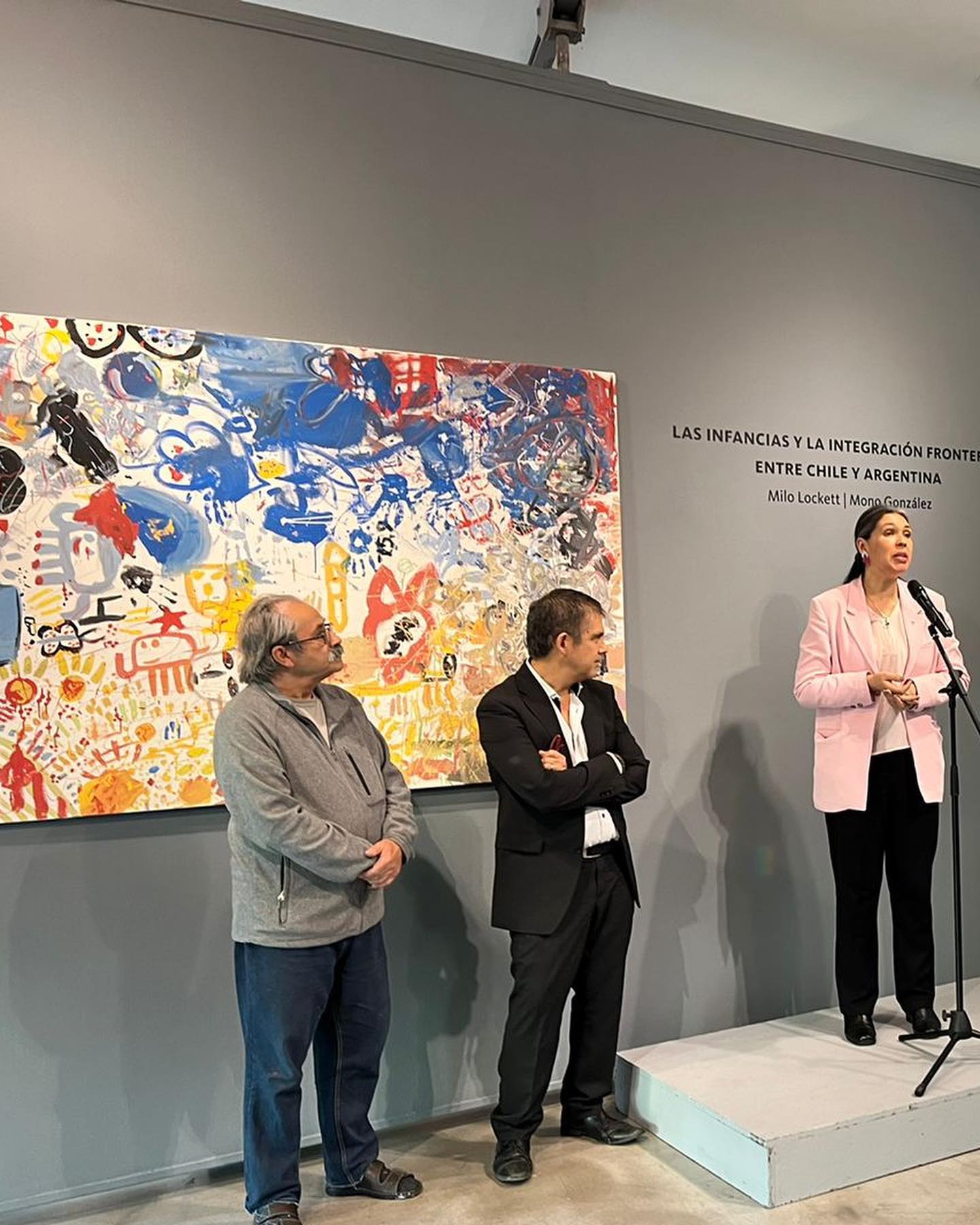 Junto al Conversatorio “Hablemos de Fronteras” en el que participó el Director de DILYF (Arg) y el Director de DIFROL (s) (Chile) se inauguró la muestra “Las Infancias y la Integración Fronteriza entre Chile u Argentina, creada por los pintores Milo Lockett y Alejandro Mono Gonzalez de Chile, la cual estará abierta al público desde este sábado hasta 3 de dic. 14hrs a 19hrs en CCMatta (domingo cerrado). Un gran momento para que nuestr@s hij@s puedan conocer las fronteras que nos unen, a través de la pintura.