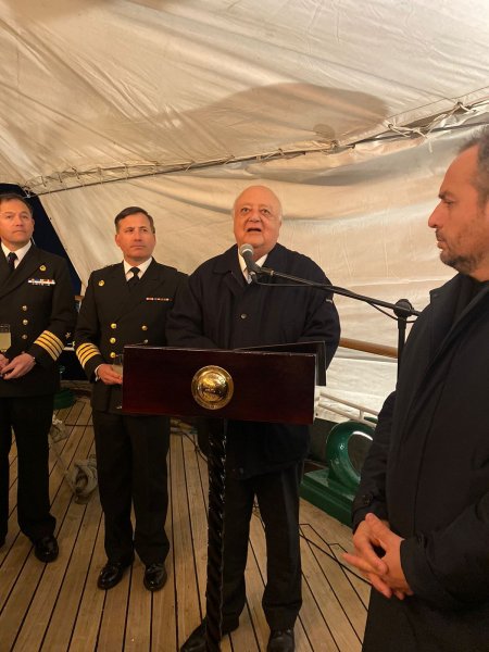 Al finalizar la tarde se realizó la recepción oficial a bordo del buque con la asistencia de 230 invitados, destacando la asistencia del ministro de Defensa argentino, Luis Petri, el jefe del Estado mayor General de la Armada argentina, Vicealmte. Carlos María Allievi, el subjefe del Estado mayor de la Armada Argentina, Vicealmte. Carlos Ricardo Flamini, el intendente Guillermo Montenegro, empresarios, académicos, autoridades locales y nacionales, entre otros.
