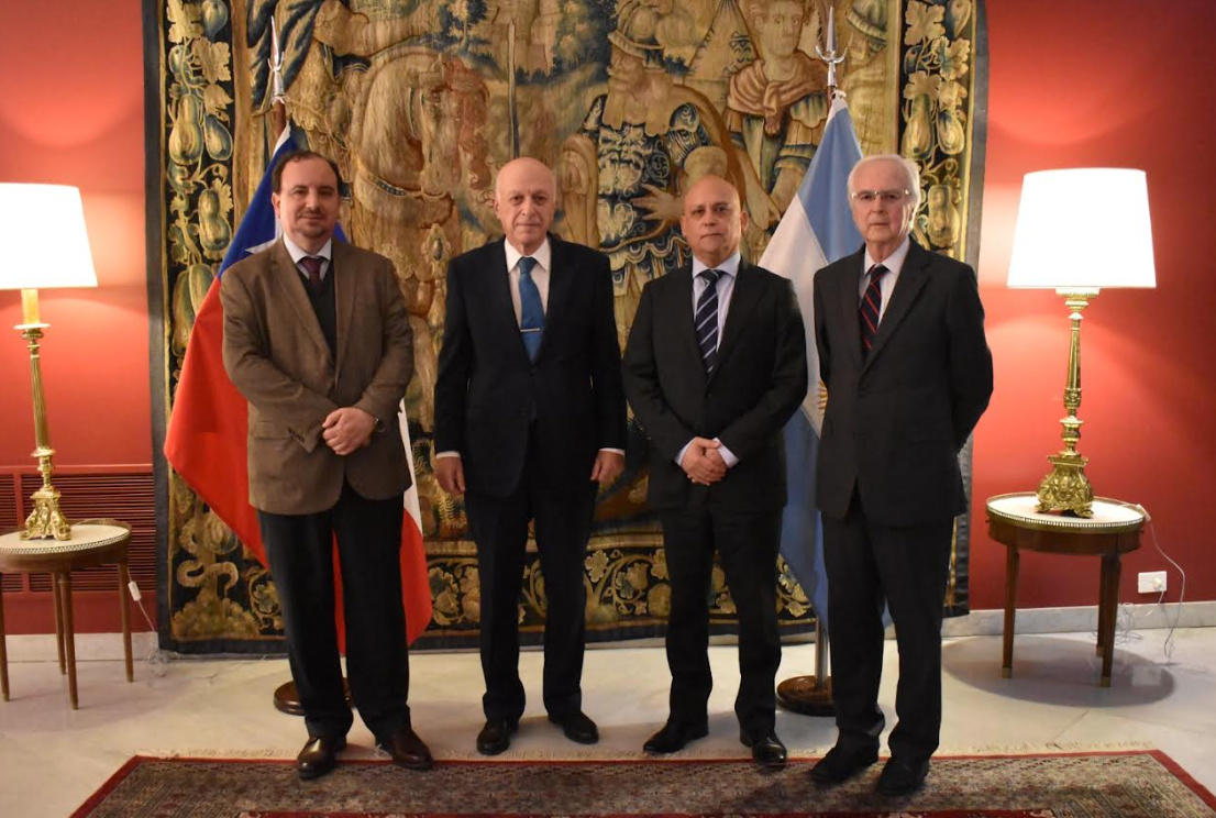 Con ocasión de la X Jornada Argentino-Chilena de Derecho Internacional, el Encargado de Negocios ai, C. Juan Pedro Sepúlveda, ofreció una recepción para los participantes en la sede de la embajada. Nos acompañó el procurador Gral. de la Nación, Dr. Eduardo Casal.