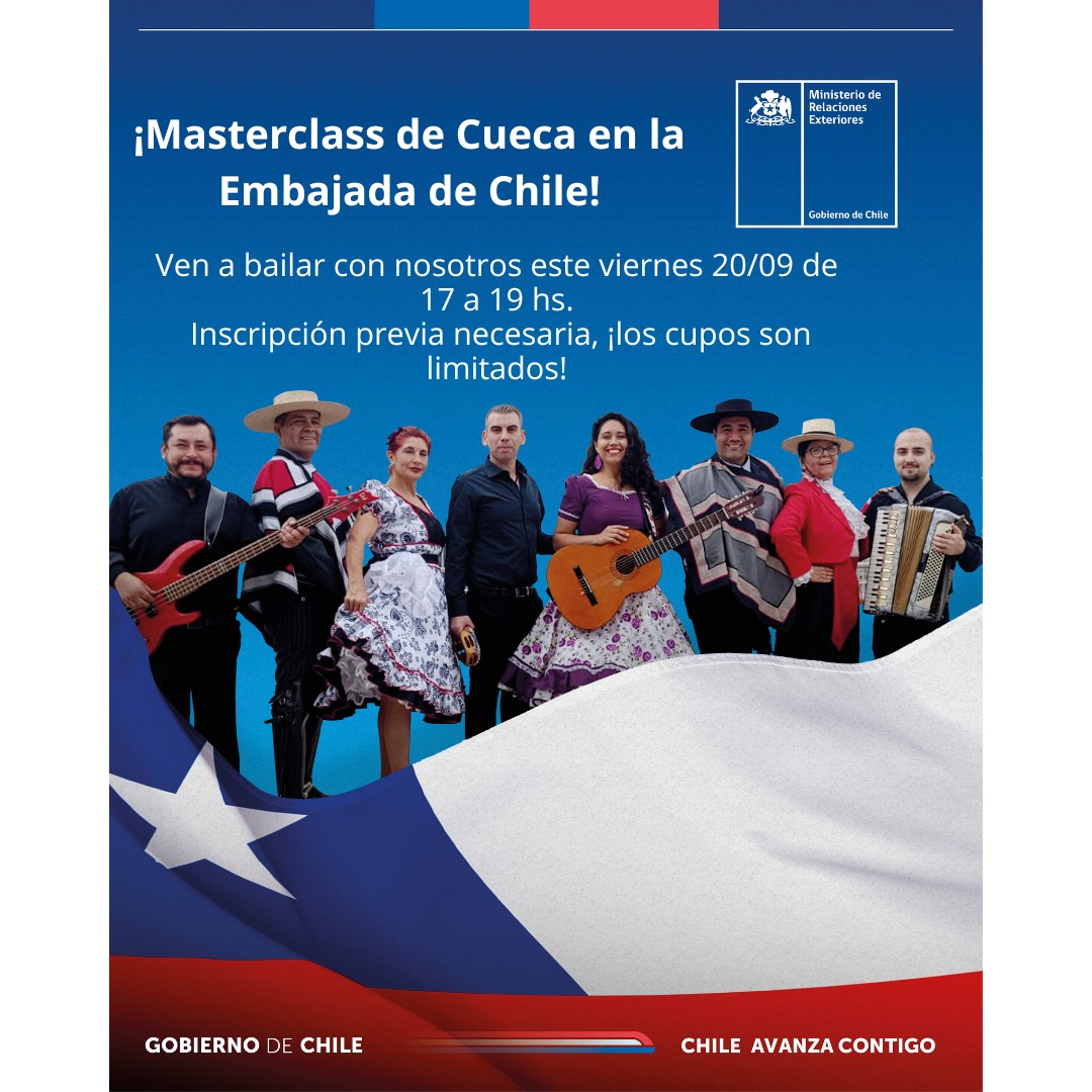 Gracias al Programa de Actividades Culturales en el Exterior (PACE) de la División de las Culturas, las Artes, el Patrimonio y Diplomacia Pública (DIRAC), la Embajada de Chile en Paraguay informa que el Grupo Folklórico Horizonte, del Ministerio de Relaciones Exteriores, viajará a Asunción para realizar presentaciones y una masterclass de nuestro baile nacional para la comunidad. La cita es para el viernes 20 de septiembre de 17 a 19 hrs.