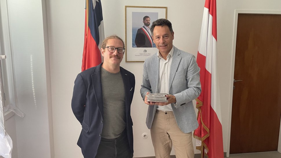 El miércoles 17 de agosto el Embajador de Chile en Austria, Sr. Rodrigo Olsen, se reunió con el Presidente de la Sociedad Internacional para la Música Chile (SIMUC), Sr. Javier Party, con la finalidad de dar un nuevo paso en la implementación de un proyecto de colaboración entre SIMUC, el Ministerio de las Culturas, las Artes y el Patrimonio (MINCAP) y el Ministerio de Relaciones Exteriores de Chile.