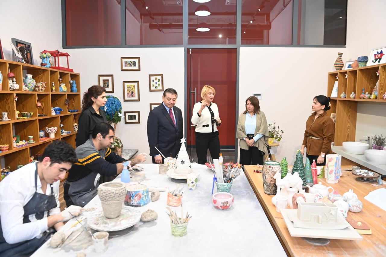 La directora del Centro, Elnara Ansari, presentó los principales ámbitos de capacitación, entre ellos cerámica artística, bellas artes, deportes y música, contribuyendo a un futuro más inclusivo.