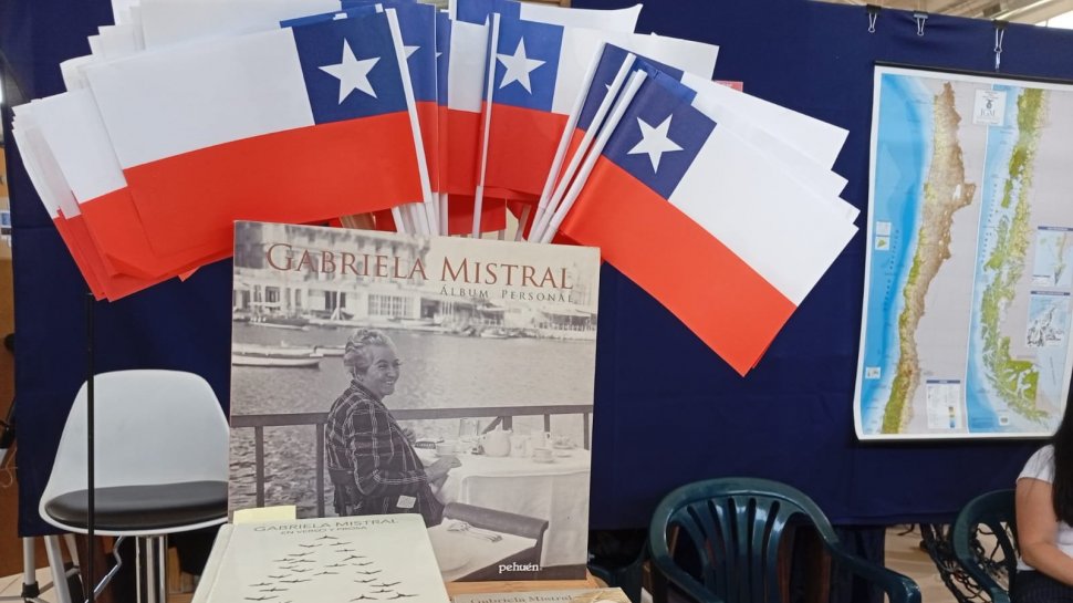 El stand del consulado, el más amplio de la feria y ubicado a la entrada de ésta, por ser Chile país-invitado, contó con una muestra de publicaciones, artesanía textil más cobre y bronce, un bolso de valija diplomática, volúmenes de nuestras matrículas consulares y una ilustración de la poetisa Gabriela Mistral, conmemorando los 80 años de la entrega del Premio Nobel de Literatura.
