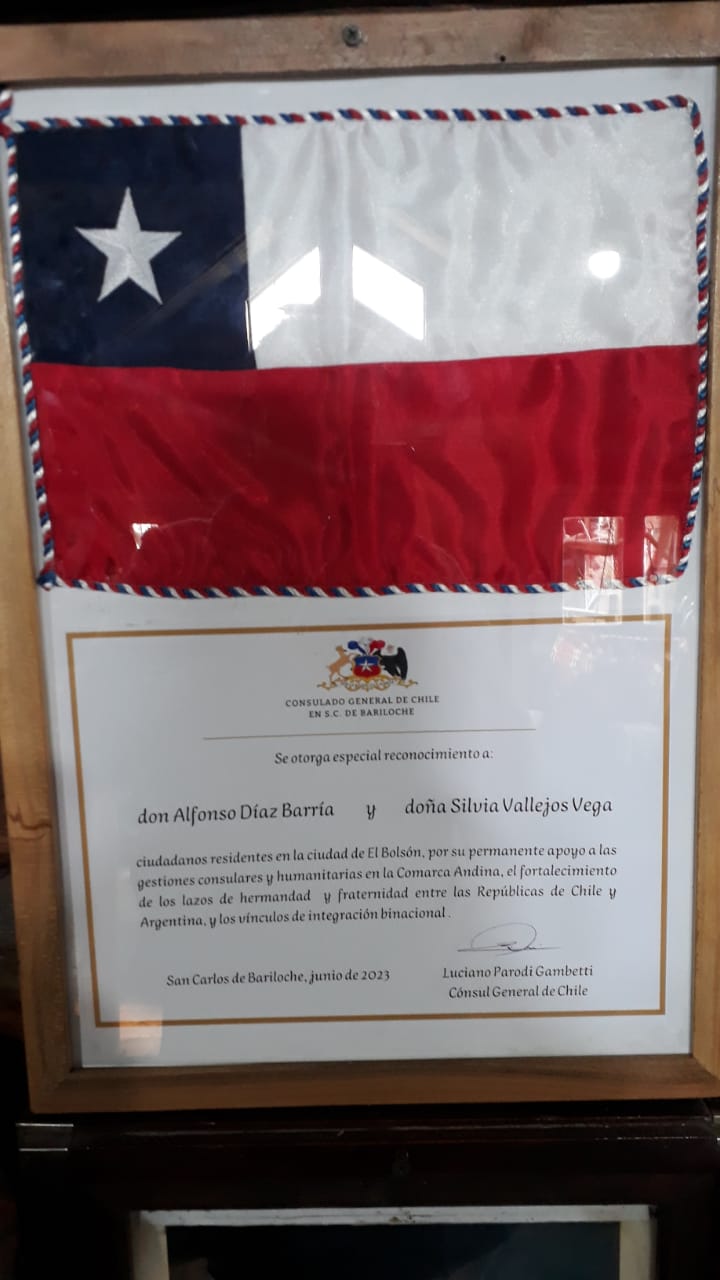 En la ocasión, el cónsul Parodi señaló que Alfonso y Silvia, vistiendo con orgullo el atuendo huaso en muchas ocasiones, han sido por igual, un apoyo permanente a las gestiones de muchos cónsules chilenos en Bariloche, sirviendo de nexo ante consultas de connacionales en el área de El Bolsón, El Hoyo y Lago Puelo, apoyando asimismo múltiples situaciones humanitarias en la zona, especialmente durante la pandemia de Covid-19. Igualmente han facilitado los contactos con la Municipalidad de El Bolsón, y los medios de radio y tv locales.