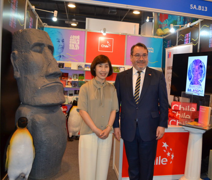 El pasado 18 de junio de 2025 se llevó a cabo la ceremonia de corte de cinta del stand de Chile en la Feria Internacional del Libro de Beijing (BIBF, por sus siglas en inglés), la cual se desarrolla entre el 18 y el 22 de junio. La actividad contó con la presencia del embajador de Chile en China, Pablo Arriarán, y de la presidenta del Grupo Nacional de Importación y Exportación de Publicaciones de China, Lin Liying, quienes inauguraron oficialmente el espacio, recordando en conjunto que, en 2024, China fue el país invitado de honor en la Feria Internacional del Libro de Santiago (Filsa, por sus siglas en español).
