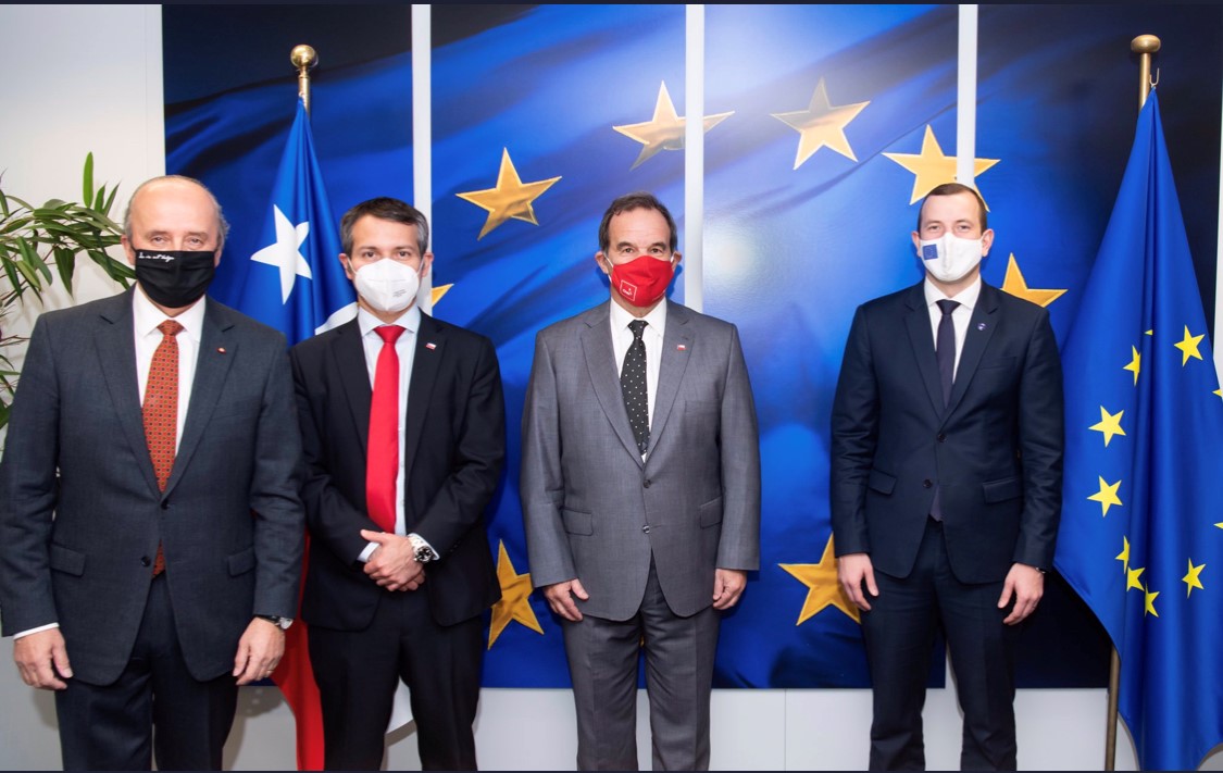 En el marco de la visita de trabajo del Ministro de Relaciones Exteriores, Andrés Allamand, a Bruselas (entre el 30 de noviembre y el 1 de diciembre), el Embajador de Chile ante la Unión Europea (UE), Patricio Torres Espinosa, participó junto al Subsecretario de Relaciones Económicas Internacionales Rodrigo Yáñez, en reuniones con el Comisario Europeo de Medio Ambiente y Oceános, Virginijus Sinkevicius; la Comisaria Europea de Energía, Kadri Simson; el Comisario Europeo de Comercio, Valdis Dombrovskis; y el Alto Representante de Asuntos Exteriores de la UE, Josep Borrell.