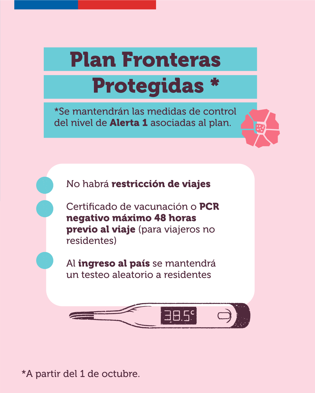 - Al ingreso al país se mantendrá un testeo aleatorio solamente a residentes, pero se reducirá de un 10% a un 5% de los viajeros.