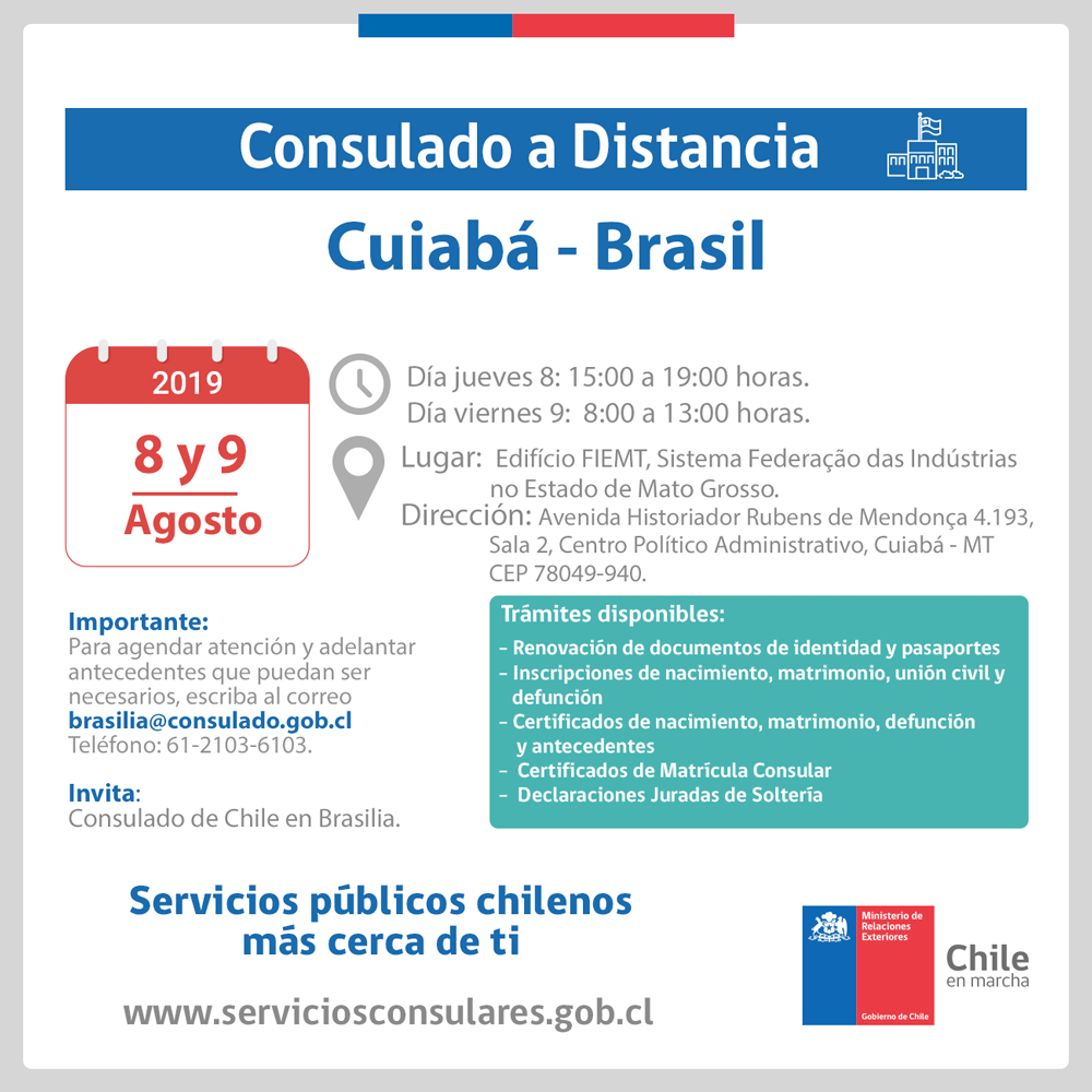 Consulado a Distancia en Cuiabá: 8 y 9 de agosto