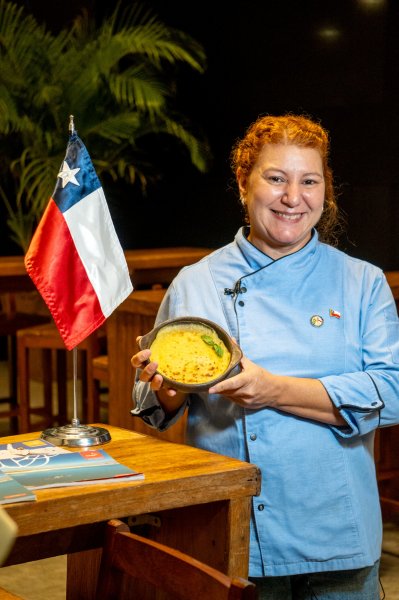 La bienvenida fue realizada por el Embajador de Chile, Sebastián Depolo, quien agradeció a la organización por la invitación a Chile. En tanto, el aula show estuvo a cargo de la Chef de la Embajada de Chile, Sra. Nivia Bartolucci, quien explicó paso a paso cómo es la preparación de este veraniego plato chileno.