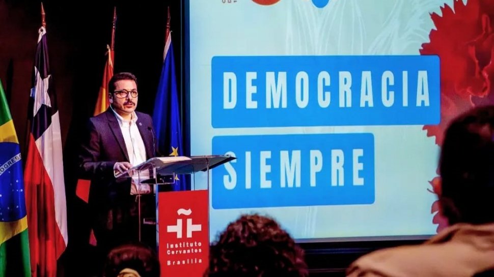 Bajo el lema "Democracia Siempre", utilizado como fondo en el escenario, el embajador de Chile en Brasil, Sebastián Depolo, se refirió a la historia reciente de Chile, destacando la figura del expresidente de la República, Salvador Allende, y expresando la importancia de respetar y cuidar nuestra democracia, no sólo en Chile, sino en toda la región.