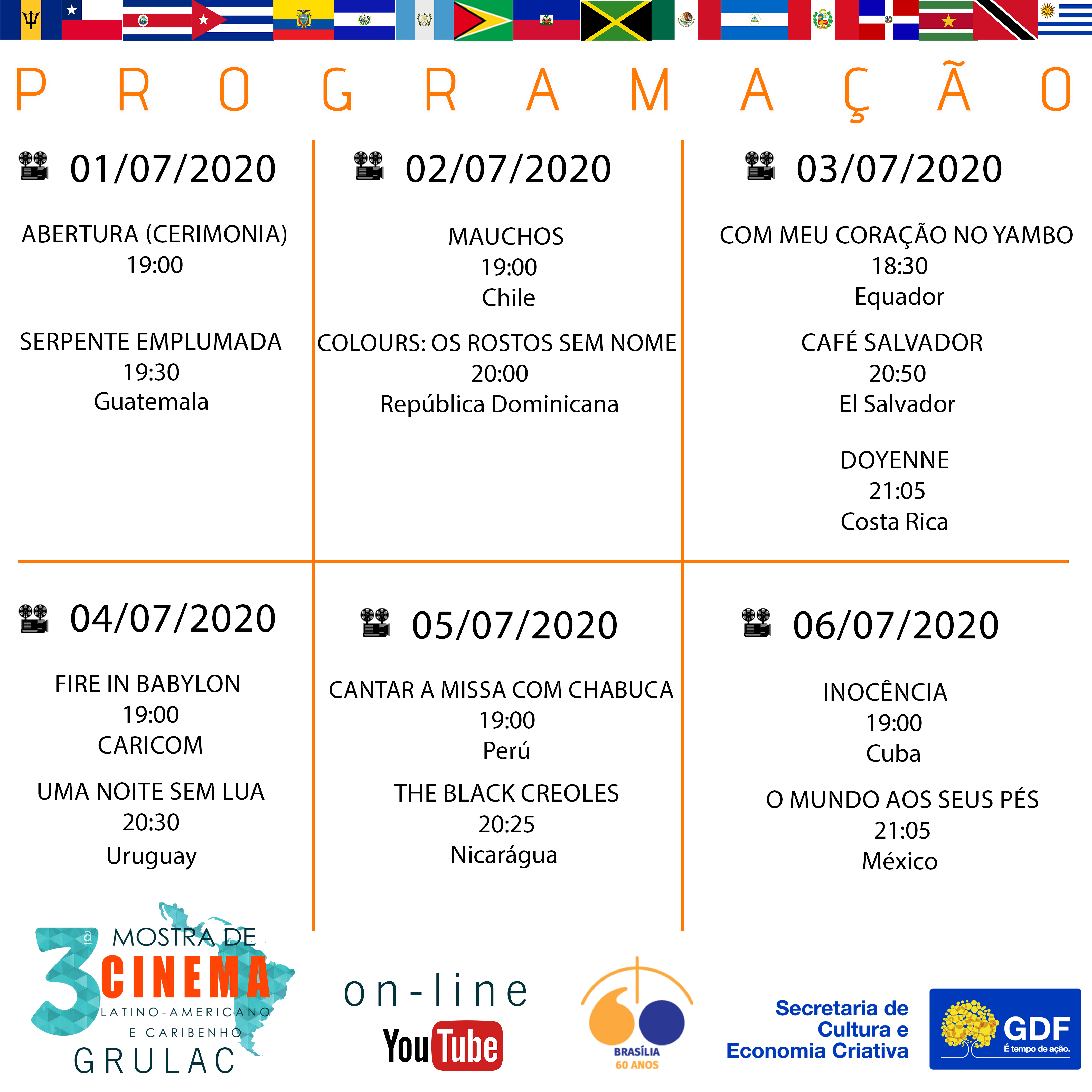 Debido a la actual situación de pandemia, los organizadores de la muestra junto a la Secretaría de Cultura del Gobierno del Distrito Federal (GDF) tomaron la decisión de efectuar este evento digitalmente a través de YouTube. La inauguración está prevista para el próximo miércoles 1 de julio a las 19 horas, con un saludo de todos los jefes de misión del Grupo de países de Latinoamérica y el Caribe (GRULAC) residentes en Brasilia. Participan un total de 12 filmes.