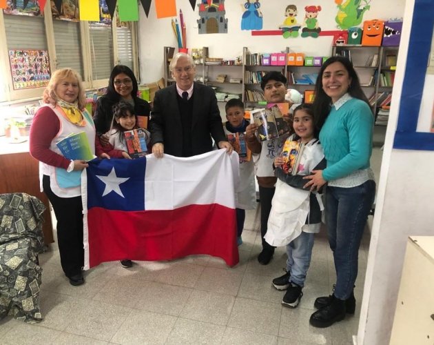 Visita de cónsul general, Alejandro Bravo Förster, a Escuela N°13 de 4 República de Chile del Barrio La Boca