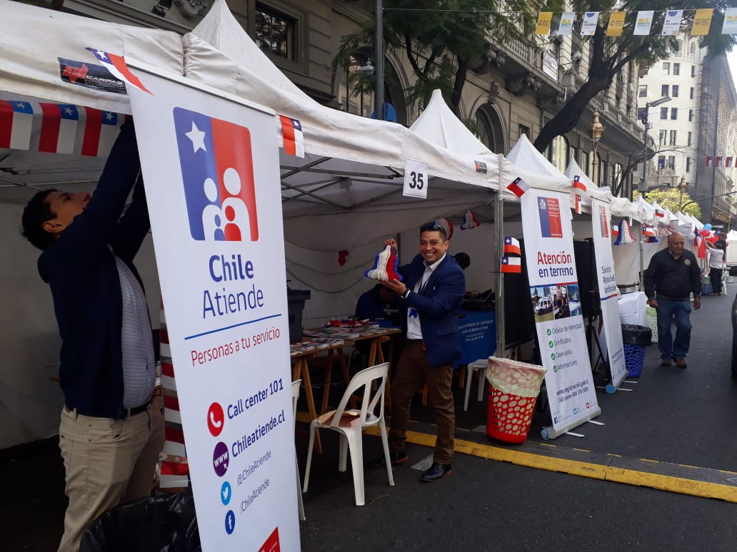 En total fueron 57 stands los que se instalaron en Avenida Diagonal Norte y Florida, todos proporcionados gratuitamente a quienes postularon a su utilización. Seis de estos puestos fueron utilizados por instituciones nacionales que forman parte del programa Gobierno en Terreno. Este año participaron el Registro Civil e Identificación, Corporación de Asistencia Judicial, Dirección para las Comunidades Chilenas en el Exterior (DICOEX) del Ministerio de Relaciones Exteriores de Chile, Servicio Electoral (Servel), Instituto de Previsión Social (IPS), Servicio Nacional de Turismo (Sernatur), Novojet y Banco Estado. Además, Skyairline, quien es auspiciado0 del evento, participó con un stand y regaló pasajes a Chile a los participantes.