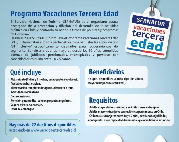 Programa "Vacaciones Tercera Edad" para chilenos en el exterior