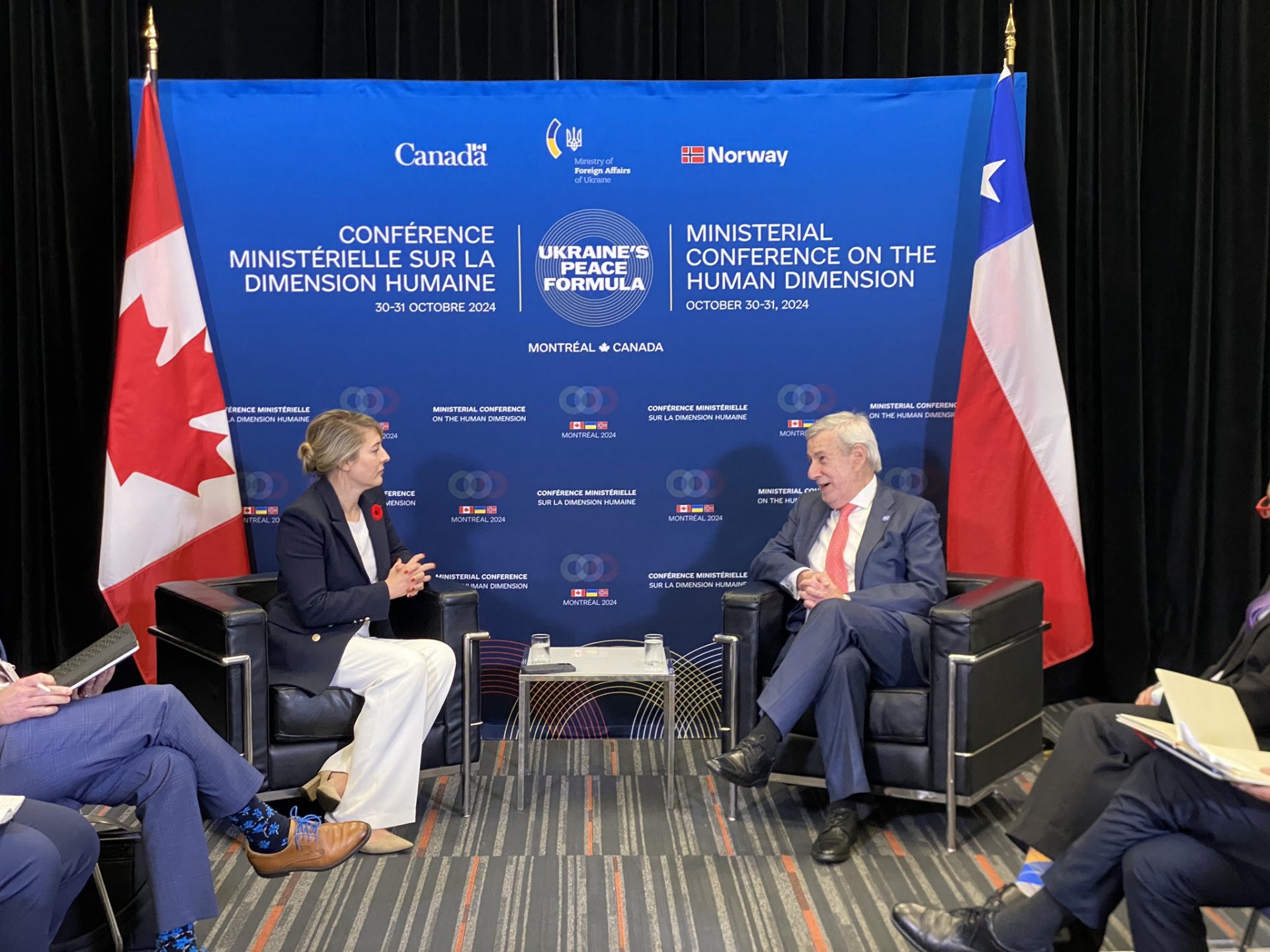 El Ministro Alberto van Klaveren presidió la delegación chilena en la Conferencia Ministerial de la Dimensión Humana de la Fórmula de 10 Puntos para la Paz en Ucrania, acompañado por el secretario general de Política Exterior, embajador Rodrigo Olsen, y el embajador de Chile en Canadá, Juan Carlos García.