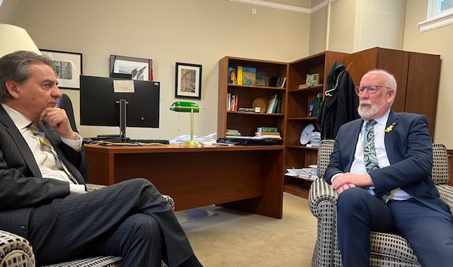 El 24 de abril el Embajador Fernández sostuvo un encuentro con el Diputado Federal Richard Cunnings, del distrito de South Okanagan-West Kootenay en la Provincia de British Columbia, perteneciente al New Democratic Party, para conocer sus impresiones de su visita a Chile, al haber integrado la delegación parlamentaria que acompañó al Speaker de la Cámara de los Comunes, Anthony Rota, en su visita de trabajo a nuestro país. Se trató de un encuentro interesante en el que se identificaron varios aspectos en común entre Chile y la Provincia de British Columbia.