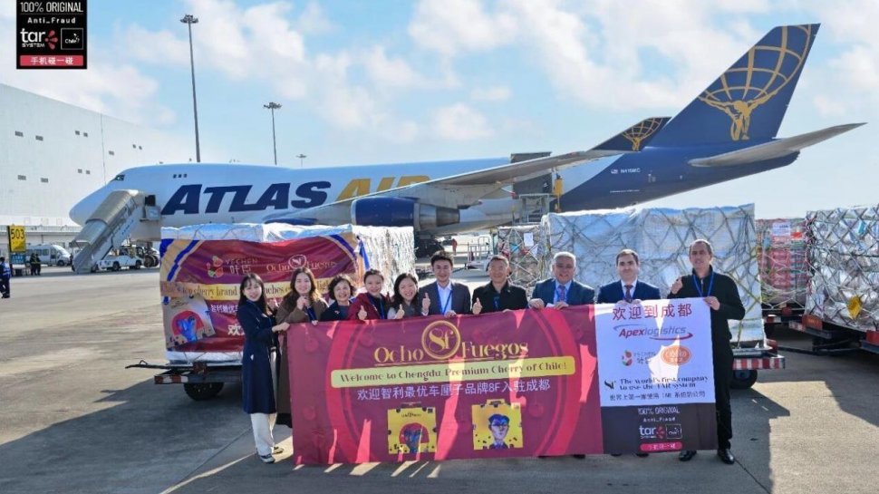 El 27 de noviembre de 2025, los primeros lotes de cerezas premium de la marca chilena Ocho Fuegos, equipados con la avanzada tecnología de certificación de seguridad TAR System, llegaron exitosamente al aeropuerto de Chengdú. Este hito marca un nuevo avance en la exportación de frutas chilenas en términos de trazabilidad, antifalsificación y protección contra manipulaciones. El vuelo inaugural fue operado por APEX, la mayor aerolínea de carga del mundo, lo que refleja la profundización continua de la cooperación logística, innovación tecnológica, seguridad del producto y la transparencia comercial entre China y Chile.