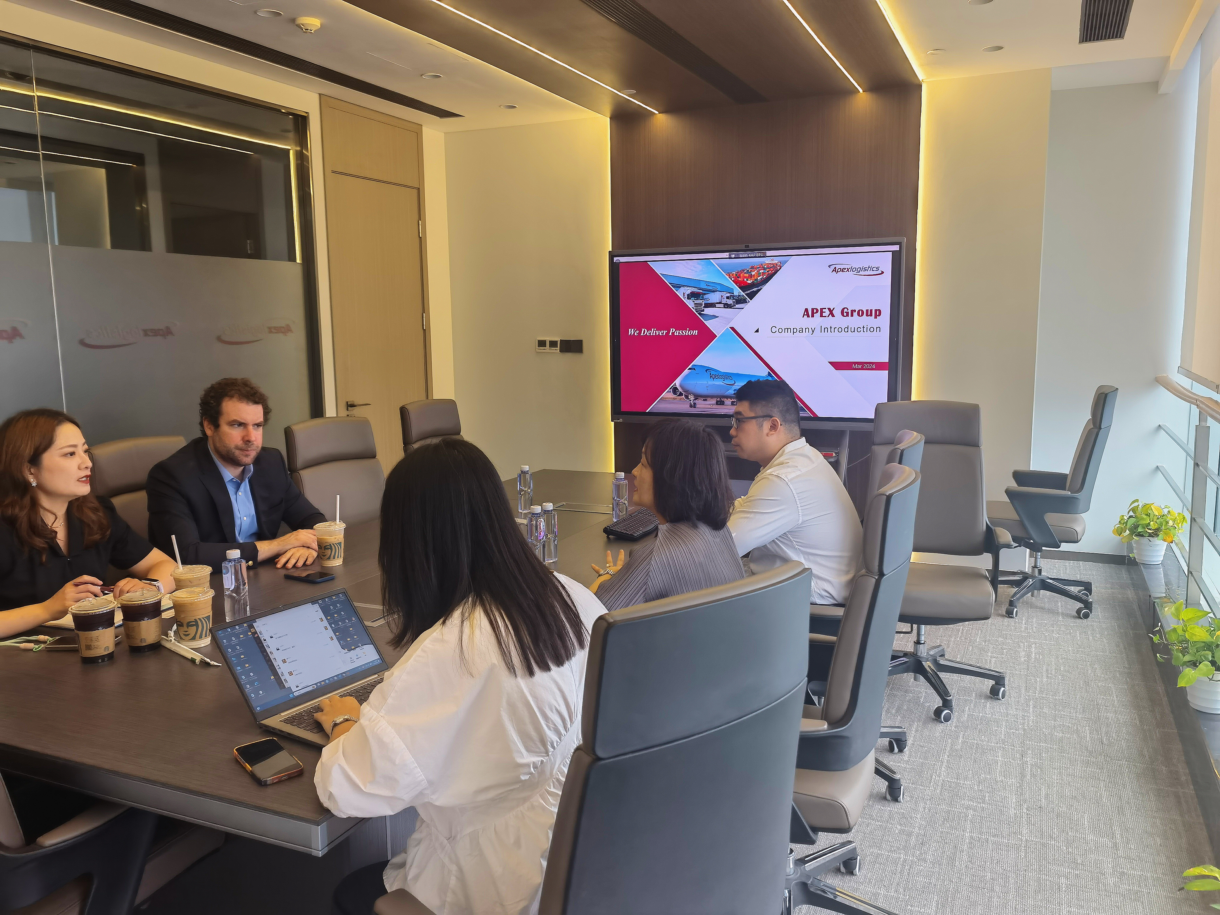 El Cónsul General, José Miguel Vial, en compañía de la Representante Comercial de Prochile en Chengdú, Yang Yu, visitaron las oficinas en Chengdú de la empresa Apex Logistics, responsable de los vuelos de carga que unen a Santiago con Chengdú, previa escala en Miami. Durante la reunión, la gerenta general de APEX Logistics, Sra. Hellen He informó que actualmente hay cuatro vuelos de carga directos semanales desde Chengdú a Santiago de Chile, con una ruta que sigue CTU-MIA-SCL, haciendo escala en Anchorage, Estados Unidos. La duración total del trayecto es de aproximadamente 30 a 36 horas.