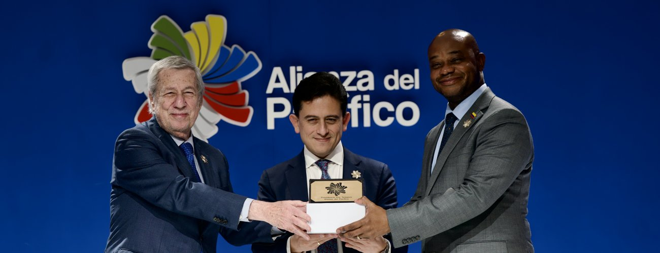 El canciller Alberto van Klaveren lideró hoy la ceremonia de traspaso de la presidencia pro tempore de la Alianza del Pacífico de Chile a Colombia. Chile concluye así su período encabezando el mecanismo de integración -además integrado por México y Perú- con importantes avances.