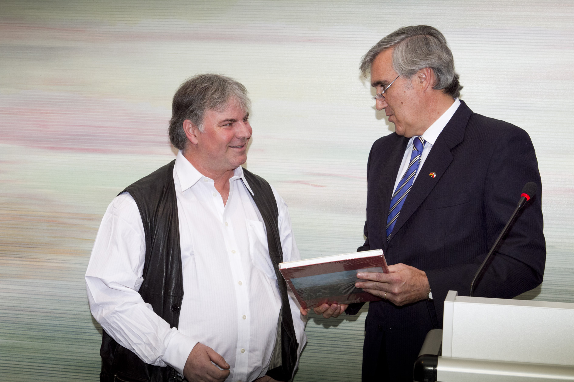 El día jueves 12 de abril se efectuó en la Sala Chile de nuestra Embajada, la exposición de pintura Olvida las Palabras Vergiss die Worte, del artista alemán Peter Lang. El evento contó con la presencia de varios Embajadores, representantes del Ministerio Federal de RREE, Fundaciones Políticas y destacados personeros del ámbito académico, empresarios y chilenos residentes en Alemania.