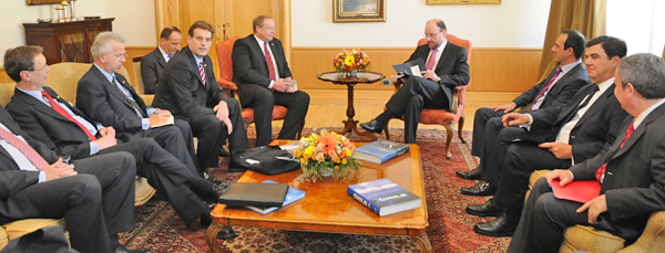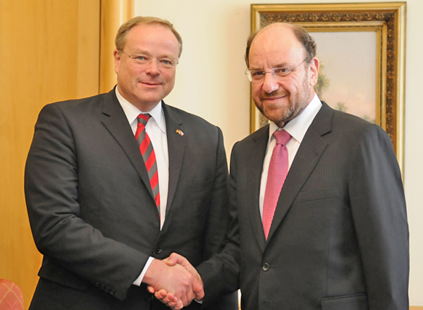 El Canciller chileno Alfredo Moreno recibió al Ministro Federal de Cooperación Económica y Desarrollo de Alemania, Dirk Niebel, quien se encuentra en Chile realizando una visita de trabajo para profundizar la relación bilateral en materia de cooperación.