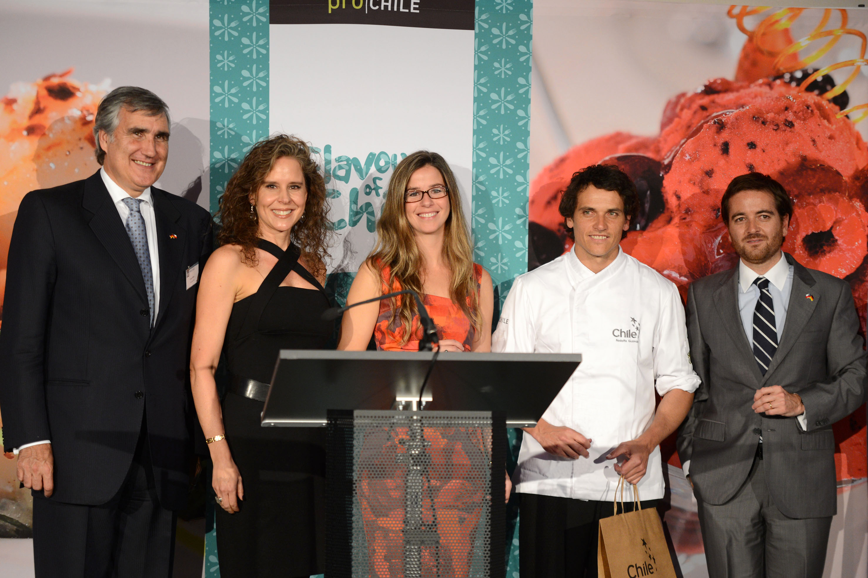 Ante más de 200 invitados, la cena de gala contó con la participación del chef del restaurant Borago de Santiago, Rodolfo Guzmán, cuya cocina es representativa de la gastronomía chilena moderna. Con la variedad de productos de nuestros océanos, bosques, valles y montañas, queremos renovar la cocina chilena, señala Guzmán. En el menú se ofrecieron vieiras con bayas de remolacha y maqui de la Patagonia, prepar .. Se sirvieron además vinos de los valles de Colchagua, Maule y Leyda.