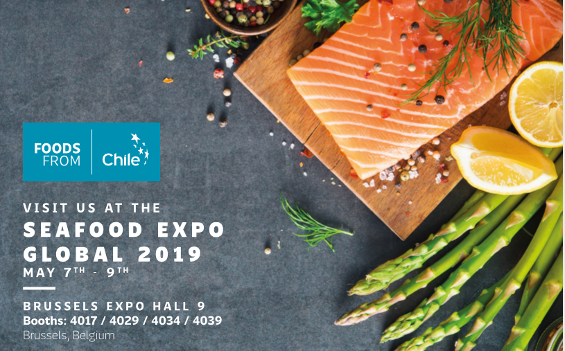 Entre el 7 y 9 de mayo, Chile se presenta en Seafood Expo Global 2019, con una amplia oferta de productos del mar. Un total de 29 empresas chilenas participarán en esta feria que atrae a más de 29 mil compradores y expositores de 152 naciones. Chile busca consolidarse como un proveedor destacado de productos como salmón y trucha en formato fresco y congelado, mejillones, centolla, ostiones y jibia, entre otros.