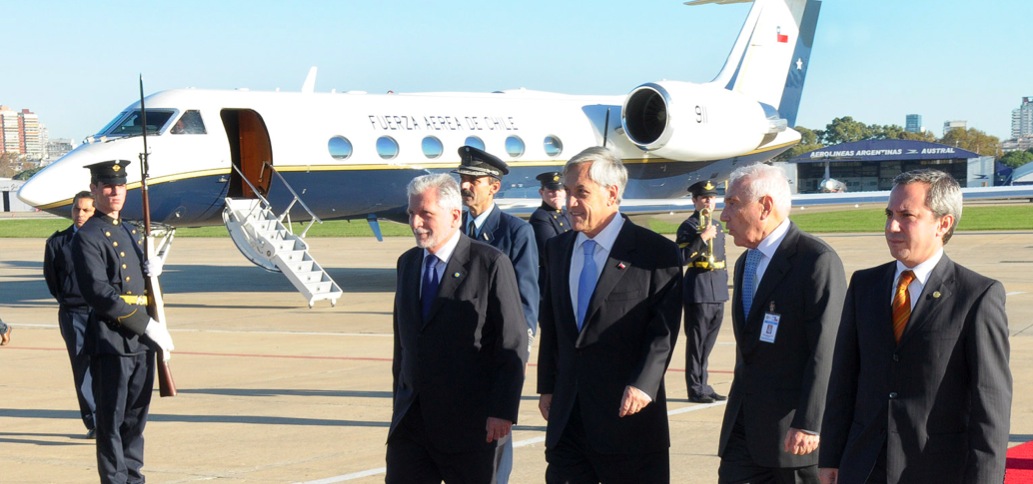 La delegación chilena, en la que también estaba incluido el Ministro de Defensa, Jaime Ravinet, arribó a Buenos Aires cerca de las tres de la tarde. El mandatario chileno y los ministros Moreno y Ravinet, fueron recibidos por el Vicecanciller del país trasandino, Victorio Taccetti y el Embajador chileno Manuel Otero.