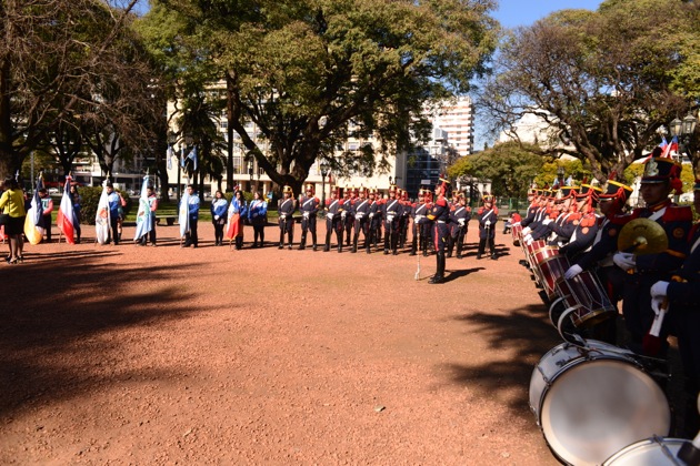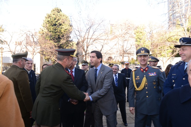 El Embajador José Antonio Viera Gallo y el Agregado de Defensa y Militar de la Embajada, Brigadier Jorge Morales Fernández junto a diversas autoridades diplomáticas, personal de las fuerzas armadas y Carabineros de Chile, alumnos de la Escuela República de Chile, Regimiento Granaderos a Caballo, Centros de Chilenos Residentes, Instituto Sanmartiniano, y público en general, celebraron en la Plaza República de Chile acto conmemorativo del natalicio del General Bernardo O´Higgins.