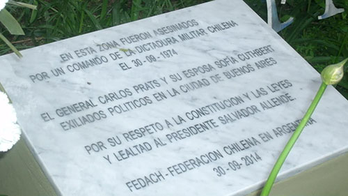 Con una placa recordatoria a pocos metros del lugar de su muerte, uno de los principales oradores del homenaje realizado en Buenos Aires fue el Embajador de Chile Marcelo Díaz, quien en su discurso pidió que el matrimonio Prats Cuthbert no cayera en la mezquindad del olvido. El homenaje que hoy les rendimos al General Prats y a su mujer viene a consolidar un proceso de restitución y la reivindicación de la figura de Prats en la historia de Chile, con toda la dignidad y el respeto que le corresponde a un mártir de la paz y de la democracia. Este homenaje también implica el derecho a la memoria, a la verdad y a la justicia dijo el Embajador Diaz.