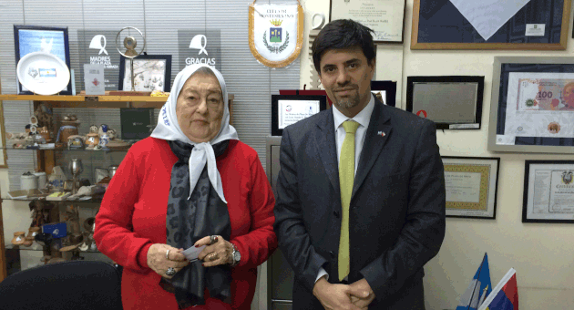 El Embajador de Chile, Marcelo Díaz, realizó la semana pasada una visita de cortesía a la Presidenta de la Asociación de Madres de Plaza de Mayo, Sra. Hebe de Bonafini.