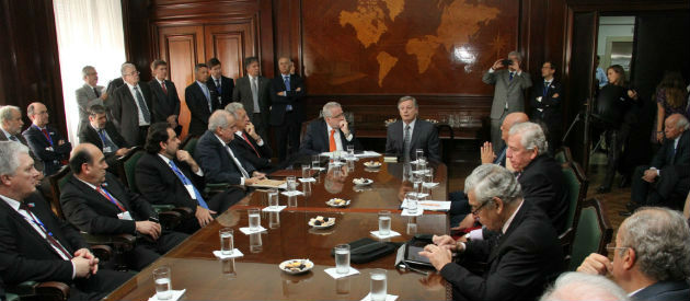 Ministro de Energía Máximo Pacheco y Ministro Energía y Minería Juan José Aranguren junto a empresarios chilenos.